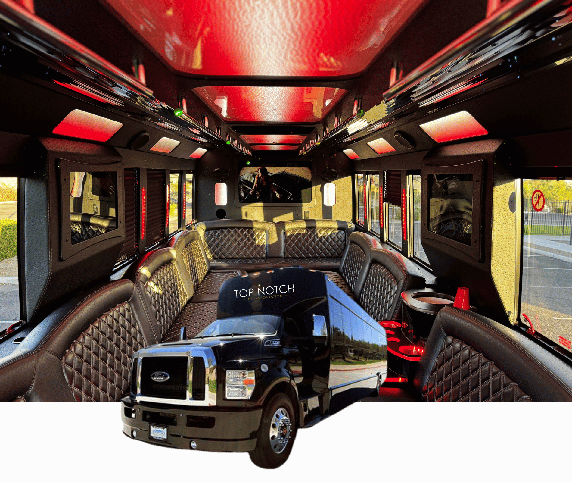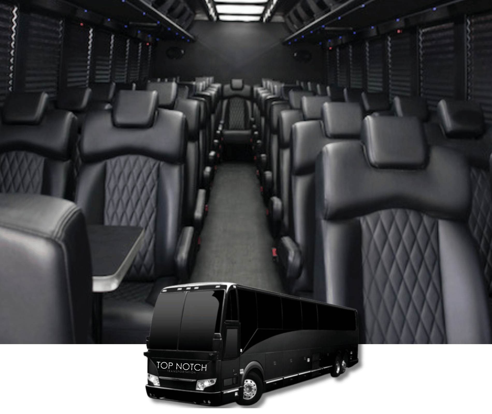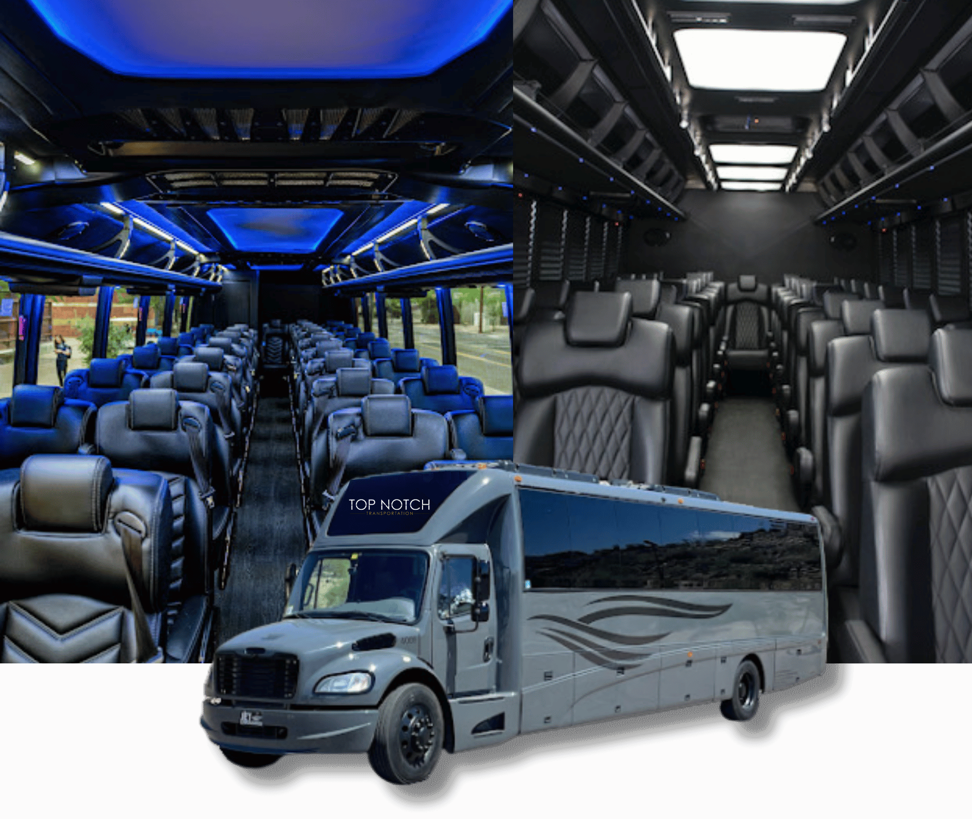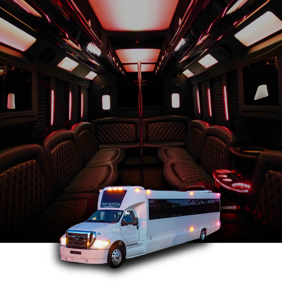 Party Buses (16-40 Passengers): Premium party buses with entertainment systems, LED lighting, bar areas, and celebration-ready interiors perfect for large fan groups, corporate outings, and game day parties traveling to Footprint Center.