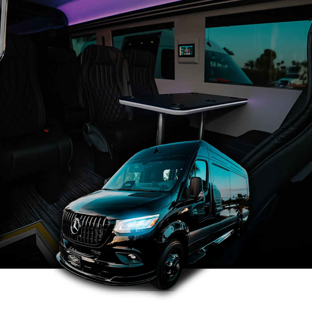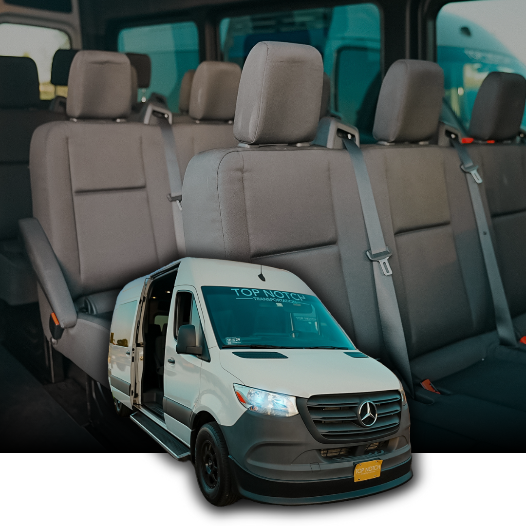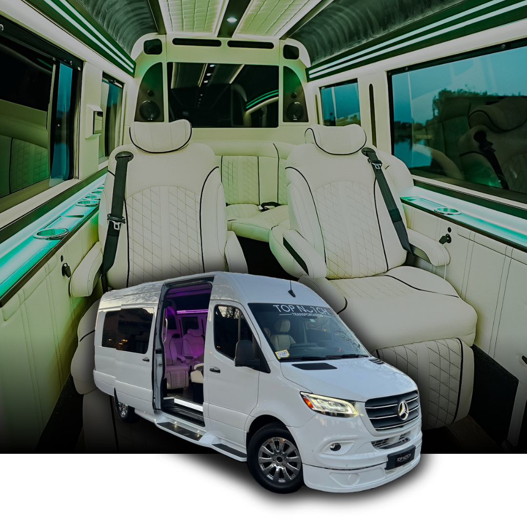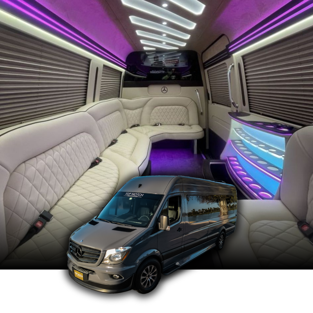 Executive Sprinter Vans (9-14 Passengers): Luxury sprinter vans accommodating mid-size groups with business-class seating and comfortable interiors ideal for corporate groups, season ticket holders, and fan groups attending Suns games together.