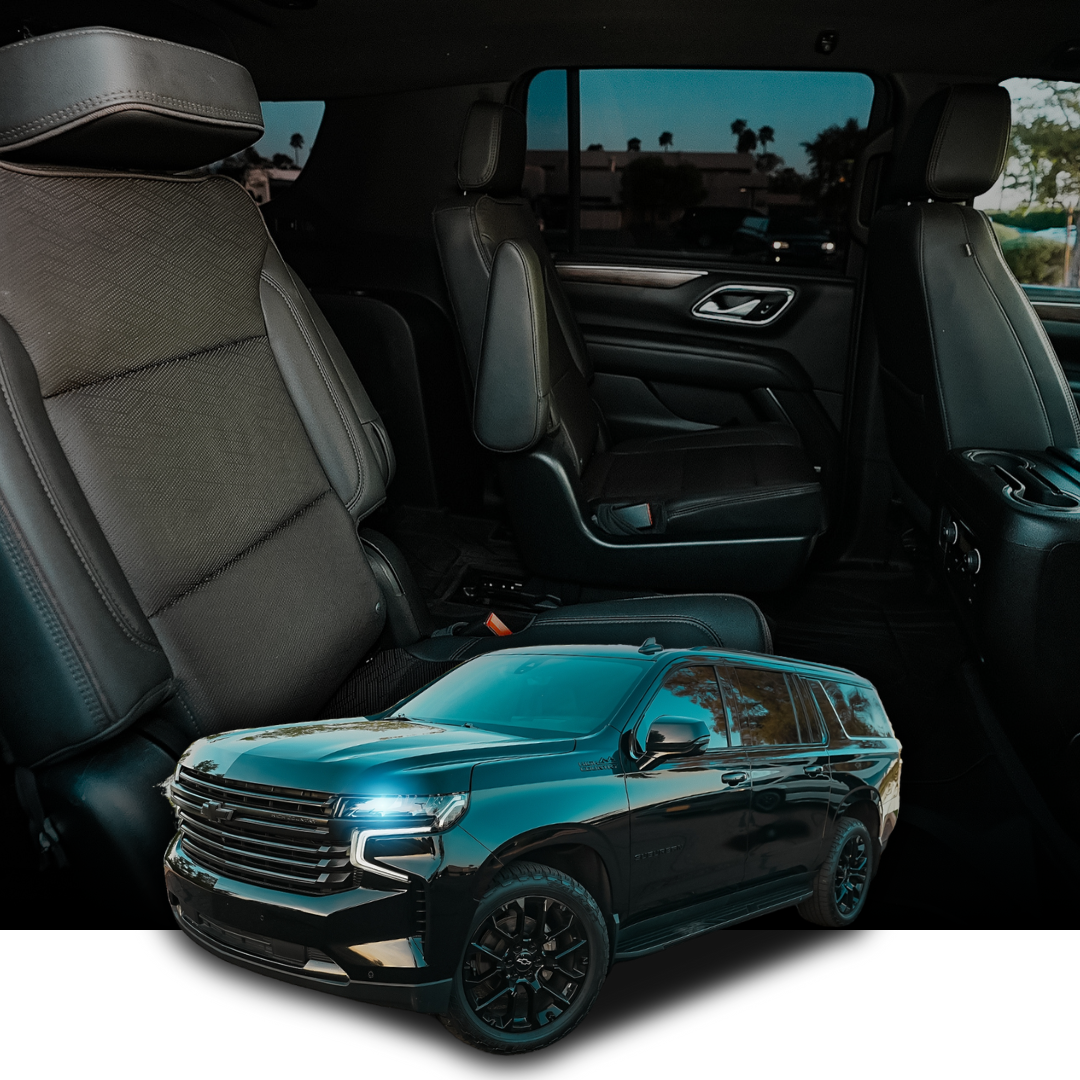 Luxury SUVs (6-7 Passengers): Cadillac Escalade and Chevrolet Suburban providing comfortable Suns game transportation perfect for families, small groups, and fans traveling together to Footprint Center with ample space and executive amenities.